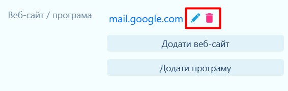 Адреси веб-сайтів можна додавати у необмеженій кількості. Ви можете видалити або відредагувати їх, натиснувши на рядок з адресою та відповідний символ.