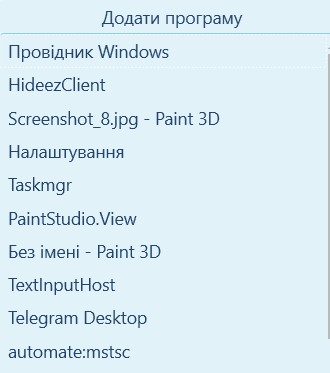 І оберіть одну зі списку програм, запущених на вашому комп’ютері. Якщо програми немає в списку, її потрібно запустити. Виконайте ту саму процедуру, щоб додати наступну програму. Видалення та редагування доданих програм застосовуються так само, як і для веб-сайтів.