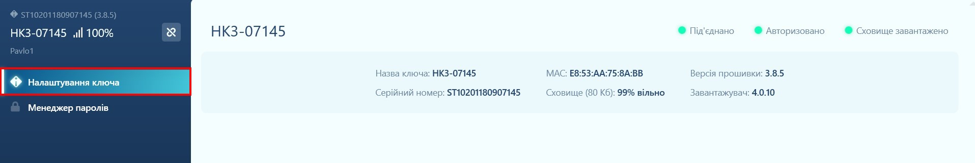 Налаштування ключа - пункт меню для відображення ключових налаштувань ключа