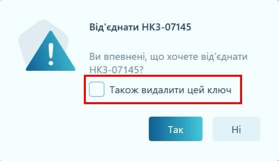 Незаповнений чек бокс біля напису Також видалити цей ключ - Від'єднати ключ від робочої станції, не видаляючи його.