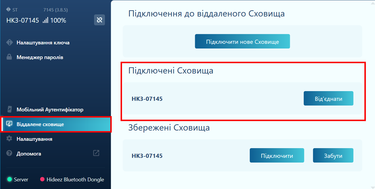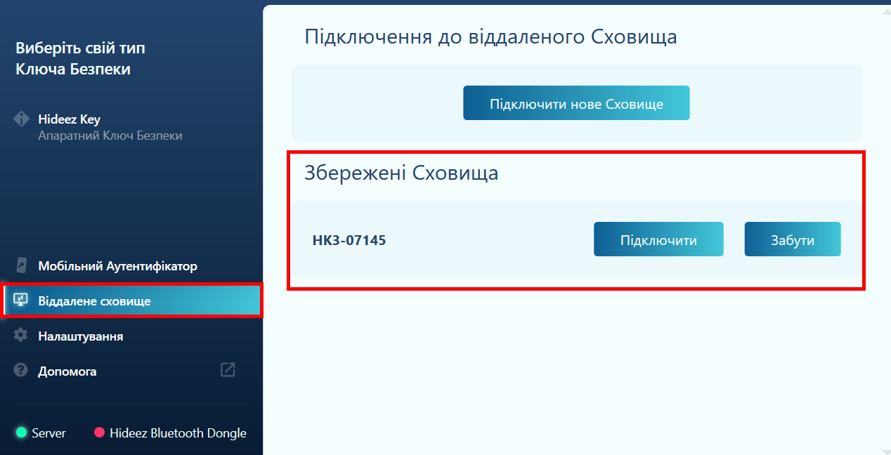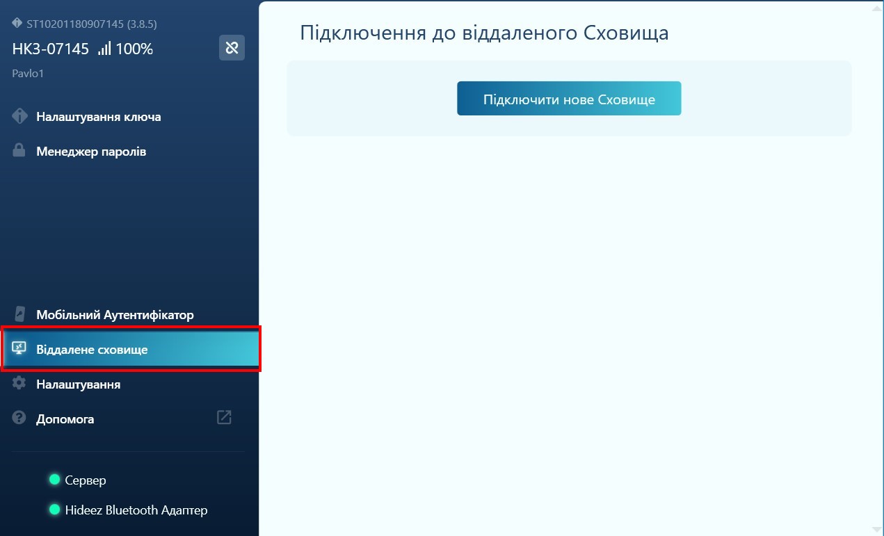 Hideez Client app – Підключення до віддаленого сховища