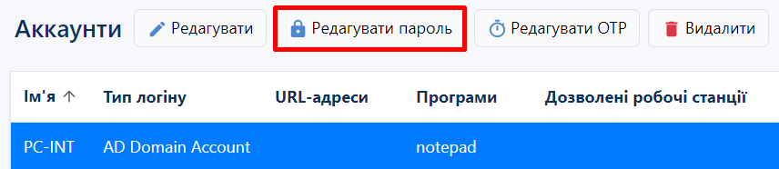 Адміністратор може також змінювати пароль вручну чи створювати новий пароль. Ви маєте обрати користувача та натиснути Редагувати пароль.