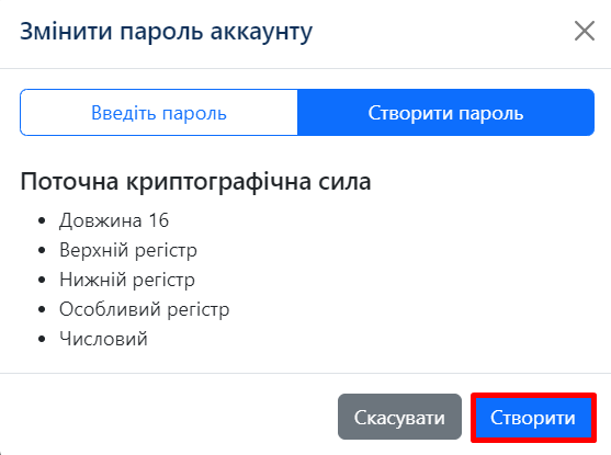 Натисніть кнопку Створити пароль. Тоді натисніть кнопку Створити.