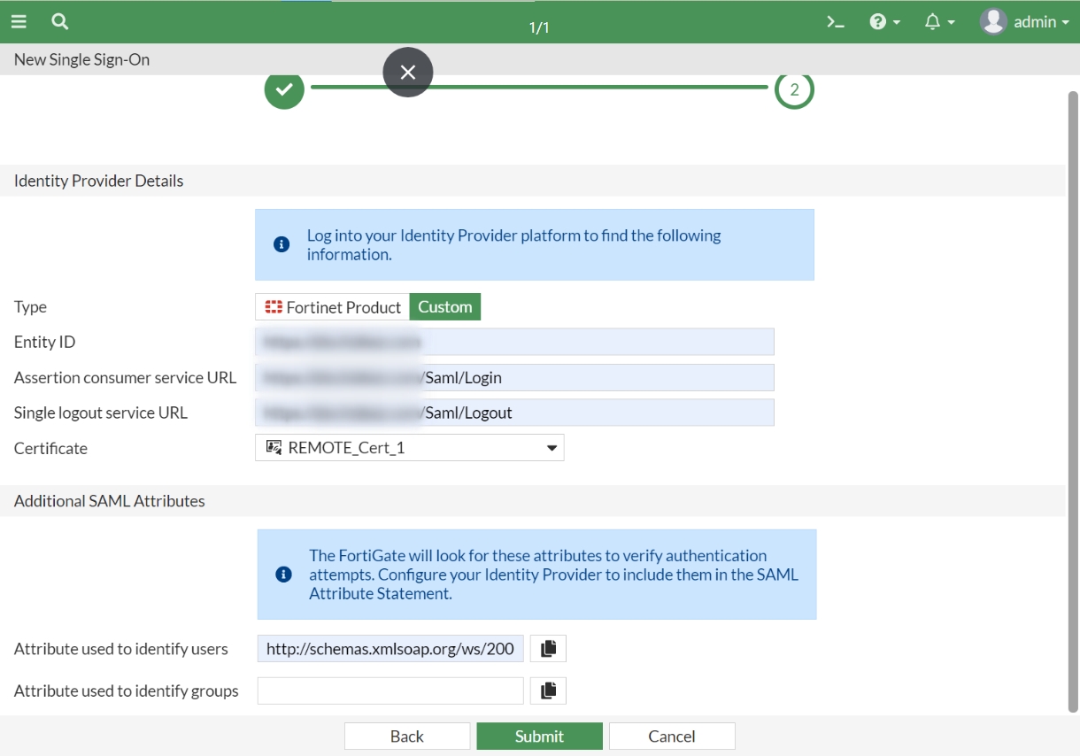 Налаштування SAML у сервісах Fortinet