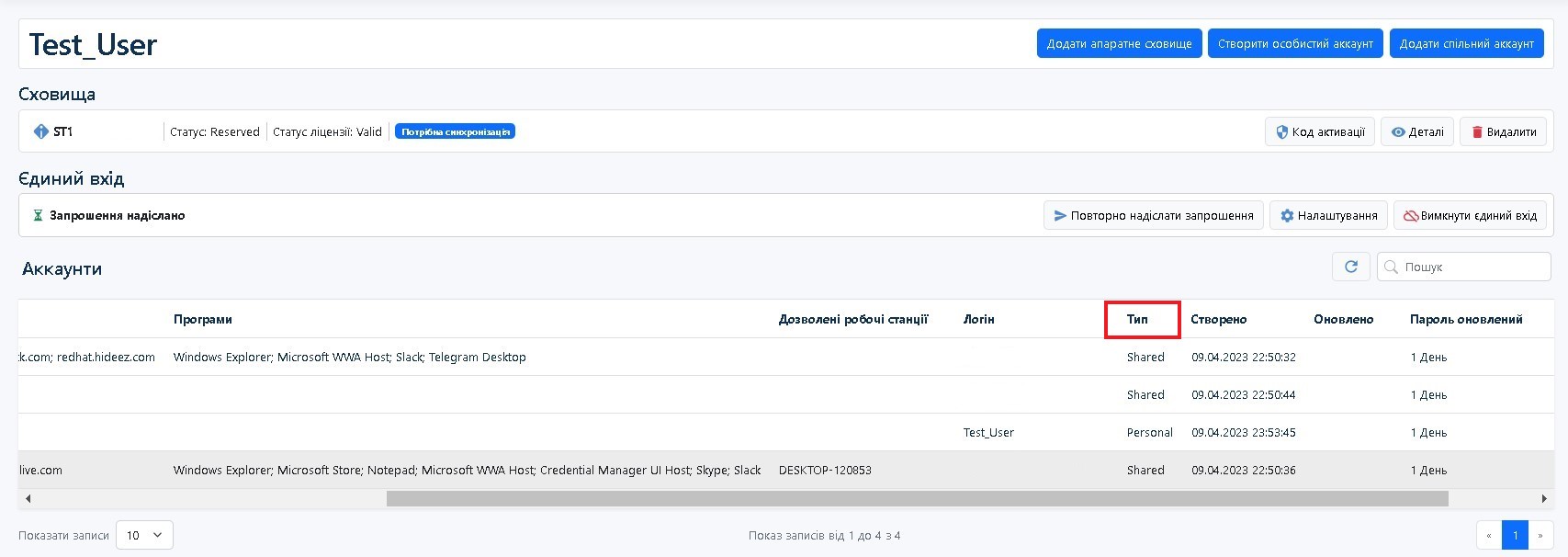 У стовпці з типом облікового запису ви можете визначити, чи це обліковий запис особистий, чи спільний.