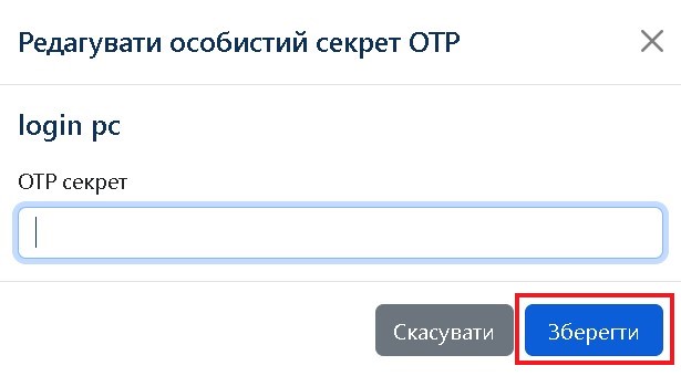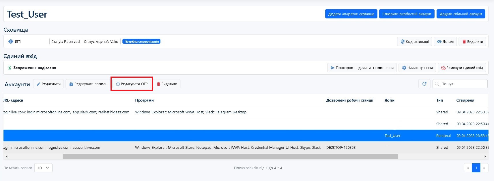 Виберіть рядок з потрібним обліковим записом і натисніть Редагувати OTP.