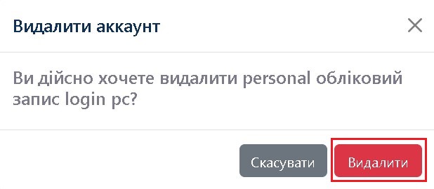 Виберіть рядок з потрібним особистим акаунтом і натисніть Видалити.