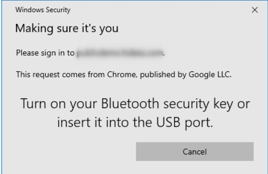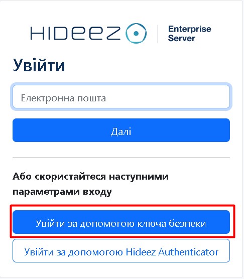 Дотримуйтесь інструкцій вашого ключа FIDO. Follow the instructions of your FIDO key. Якщо ви використовуєте Hideez Key, зверніться до цього посібника. Якщо ви використовуєте платформенний ключ безпеки - до цього.