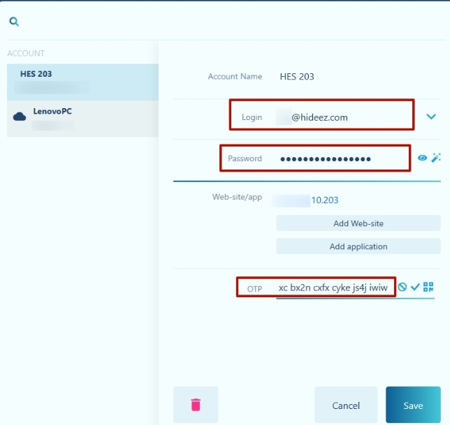 Додавання акаунта адміністратора HES з увімкненим OTP до Hideez Key