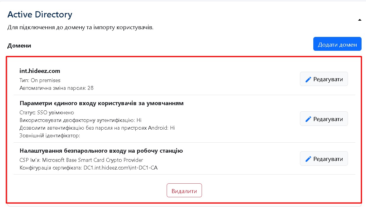 Підключення Hideez Server до Active Directory (On-premises)