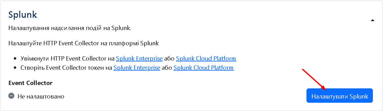 Також тут можна встановити налаштування Splunk.