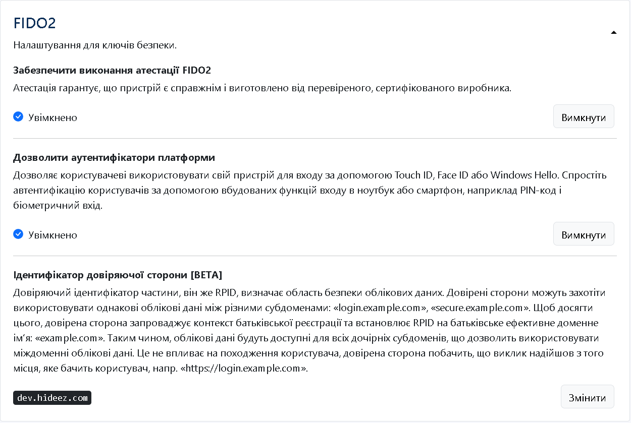 Отже, список ключів FIDO користувача буде виглядати так: