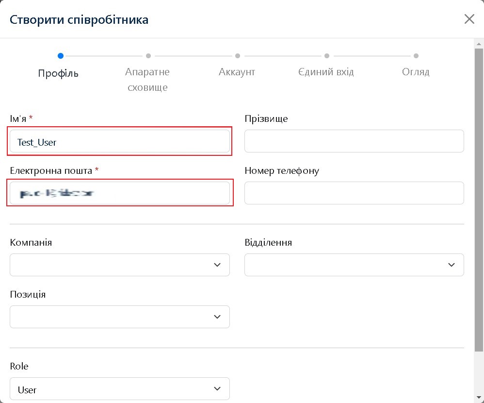 Заповніть дані співробітника: