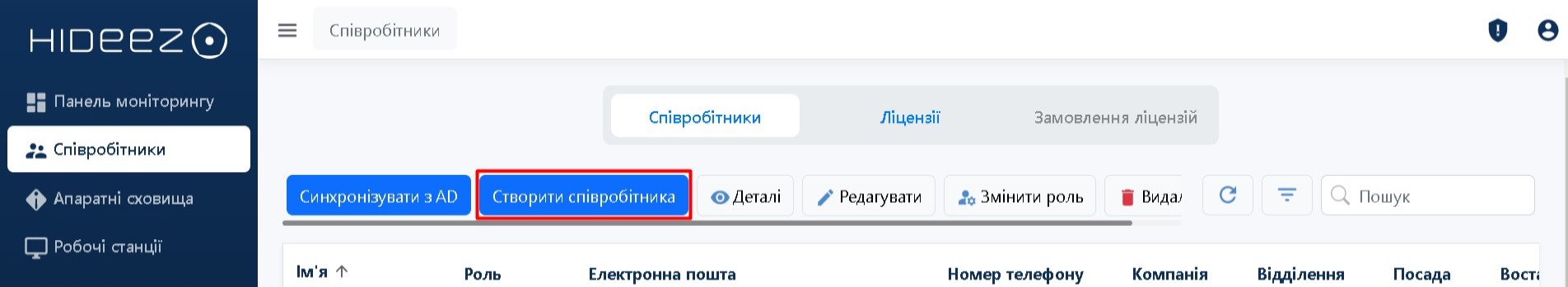 Натисніть кнопку Створити співробітника