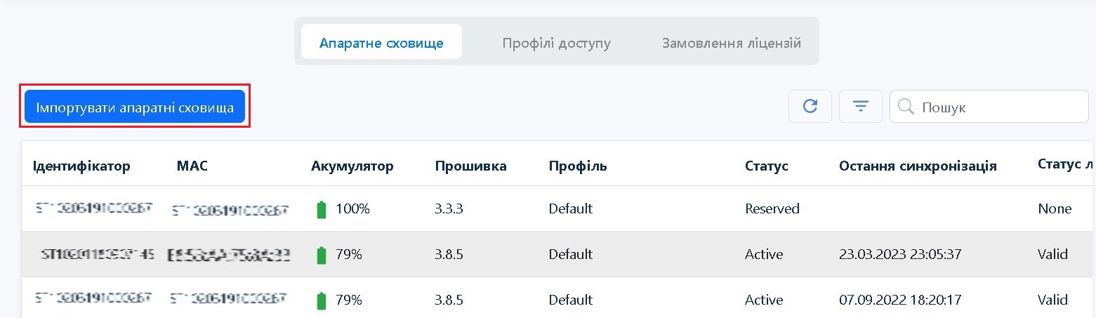 Після імпортування, до списку апаратних сховищ буде додано нові ключі з поточними ліцензіями.