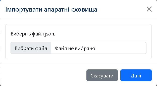 Натисніть кнопку Імпортувати апаратні сховища.