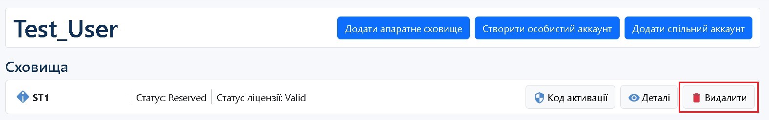 Перейдіть на сторінку Співробітники, оберіть із списку потрібного співробітника. Натисніть два рази на поле з іменем співробітника або натисніть Деталі. У розділі Сховища, навпроти апаратноо сховища натисніть Видалити.