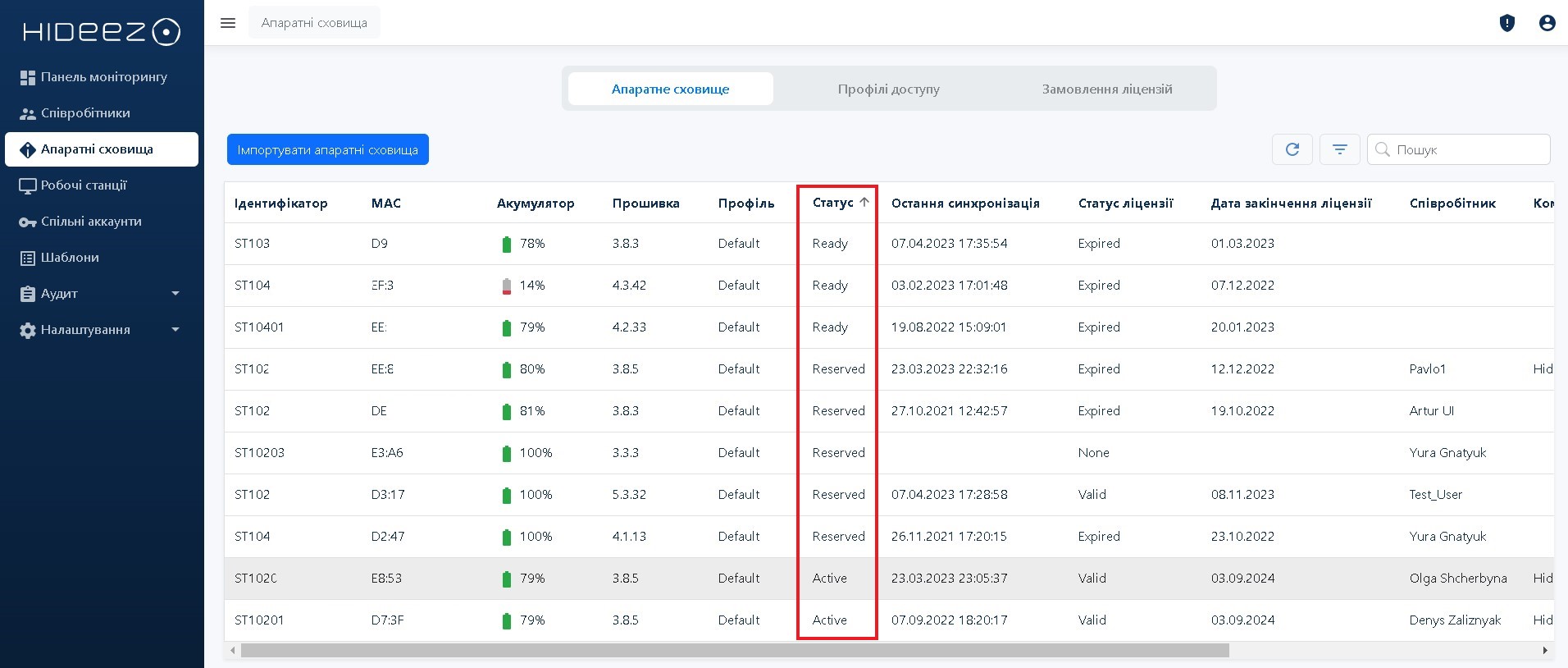 Для зручності керування ключами Hideez існують різні статуси, які дозволяють адміністратору впроваджувати різноманітні політики безпеки.