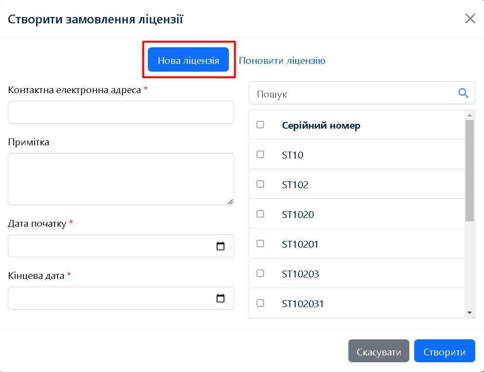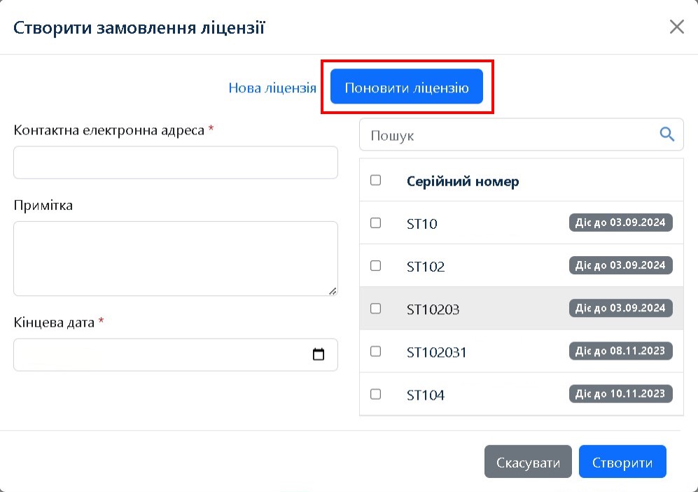 Виберіть, який варіант вам потрібен: замовлення нової ліцензії або продовження існуючої.