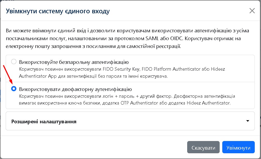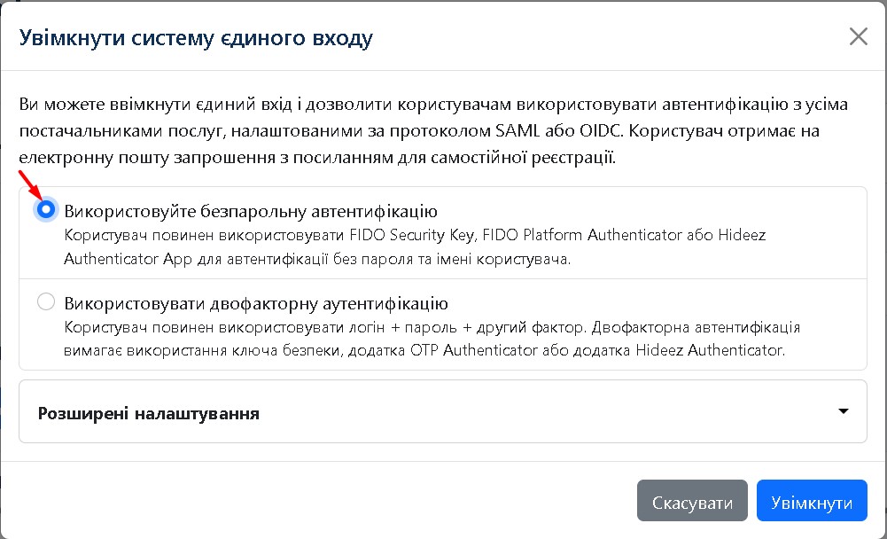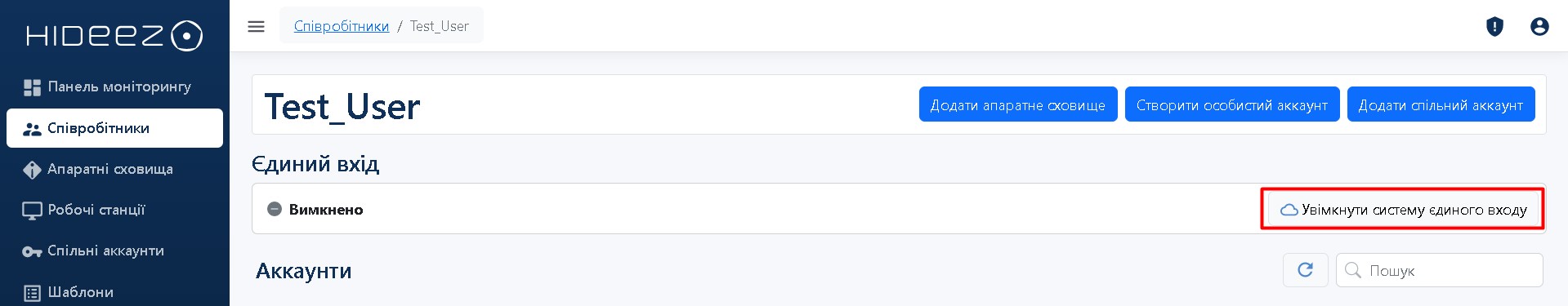 Увімкнути систему Єдиного входу для співробітника