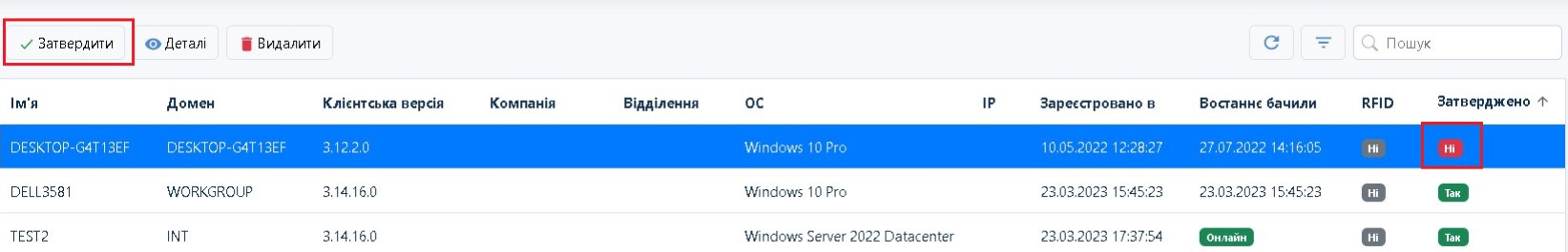 Потрібно натиснути на рядок з робочою станцією та натиснути кнопку Затвердити.