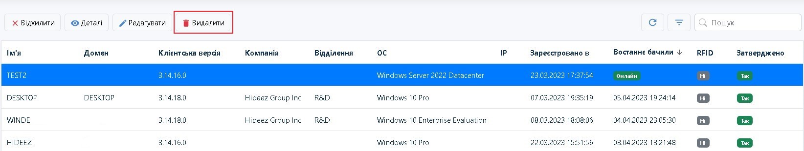 Потрібно натиснути на рядок з потрібною робочою станцією і натиснути кнопку Видалити.