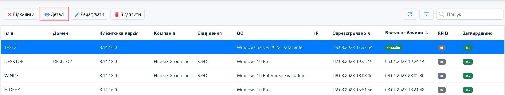 Натисніть на рядок з потрібною робочою станцією та натисніть кнопку Деталі.