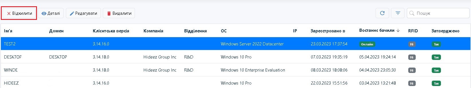 Потрібно натиснути на рядок з потрібною робочою станцією та натиснути Відхилити.