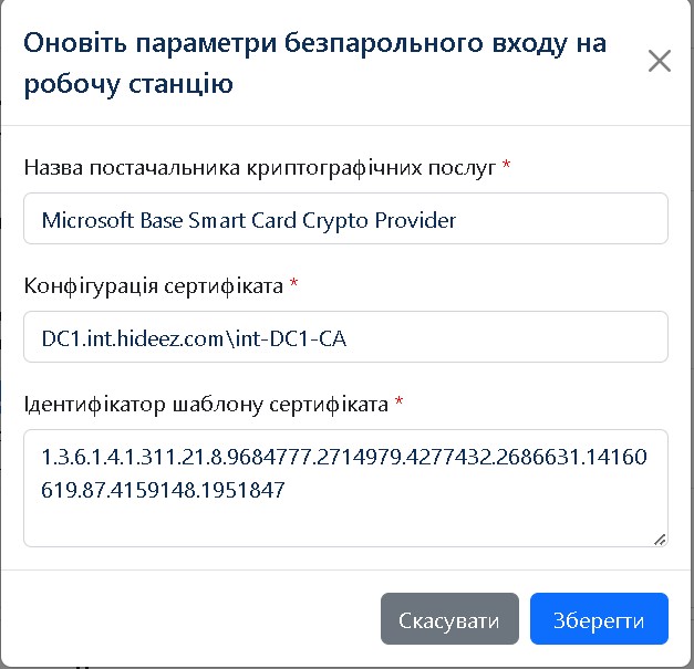 Налаштування сервера Hideez для безпарольного входу у робочу станцію Active Directory On-Prem