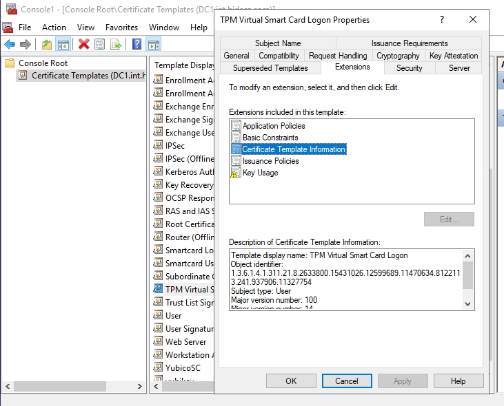 Щоб визначити третій параметр (Ідентифікатор шаблону сертифіката), перейдіть до контролера домену і виконайте такі дії: