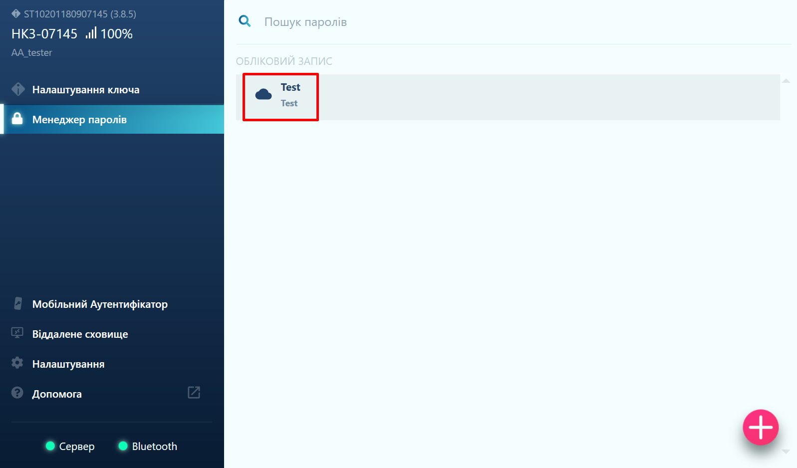 ВАЖЛИВО: Зверніть увагу, що підключення по внутрішньому Bluetooth підтримується лише для Windows 10 версії 1903 (2019) і пізніших. У попередніх версіях Hideez Key працює лише з донглом Hideez.