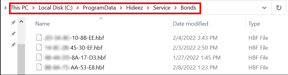 Перейдіть у C:/Program Data/Hideez/Sevice/Bonds і видаліть файл, що відповідає mac-адресі вашого ключа. Наприклад, якщо ваш ключ має Mac-адресу E8:53:AA:23:BB, файл матиме назву BB-8A-23-AA-53-E8.hbf.
