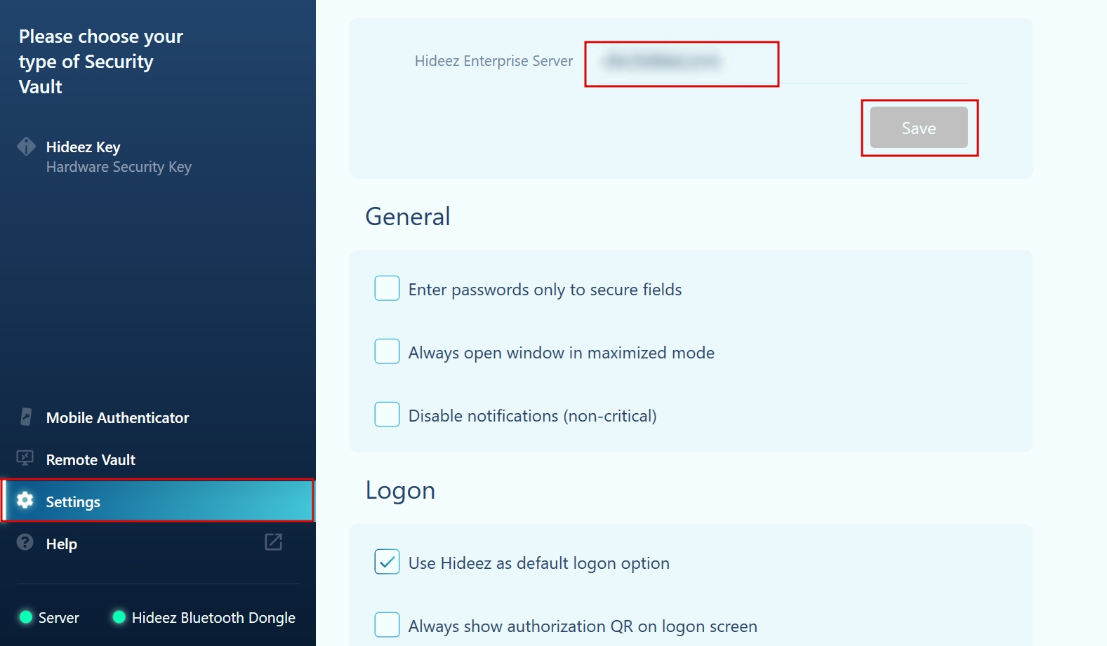 У разі зміни адреси сервера не забудьте змінити адресу сервера в інтерфейсі клієнта Hideez. Перейдіть до Налаштування -> поле Hideez Enterprise Server, введіть або змініть адресу сервера HES і натисніть Зберегти