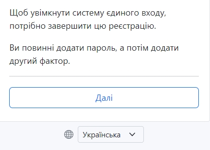 Дотримуйтесь інструкцій на екрані та встановіть пароль. Також тут можна змінити мову відображення.