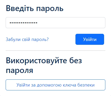 Введіть ваш пароль на натисніть кнопку "Увійти".