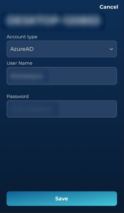 Підтвердьте реєстрацію в Hideez Authenticator. Виберіть тип облікового запису (локальний/доменний/Microsoft/AzureAD) і заповніть усі поля. Потім натисніть кнопку «Зберегти».